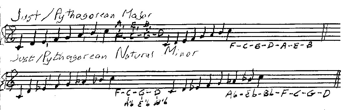 Here’s the C Major scale in both Just and Pythagorean versions: