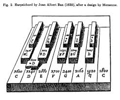 The solution executed in 1496 by Arnold Schlick and Henricus Grammateus was to leave musical Eden. Because ears accustomed to just intonation would want to hear the ancient harmonic purity as much as possible, a series of subtle compromises was created in various meantone temperaments. What if the D on the keyboard could play both D’s by compromising the pitch of each just a bit? The goal of meantone temperament was to create several keys with very good major thirds, pretty good minor thirds and sixths, slightly flatted fifths in the central keys,  and one very bad perfect fifth in the most remote key possible.  Of all the different meantone temperaments attempted, the one that came closest to just intonation while employing only twelve keys representing over 20 different notes was “quarter-comma meantone,” which yielded eight good major triads, eight good minor triads, four badly out of tune major triads, and four badly out of tune minor triads. This worked well for a couple centuries, but as music became still more complex (can you spell Bach?), composers exploring more remote key transpositions hit the “wall” of meantone temperament. Musical progress was held back once again. In 1650, Athanasius Kircher advocated yet again for a 53-eq template, but his research was largely ignored.