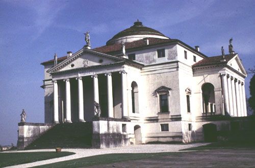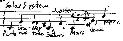 saturn_familyPythagoras taught that the orbit of each of the seven planets produced a note based on its distance from the still center of Earth. The distances were compared to the subdivisions of the string. This is the Music of the Spheres. Pythagoras said, “There is geometry in the humming of the strings … there is music in the spacing of the spheres.” The sound produced is so exquisitely rarified that our ears can’t hear it. It is the Cosmic Music which Philo of Alexandria claims Moses heard on Mount Sinai, and which St. Augustine believed we hear as we die, revealing the highest reality of the Universe. Pythagorean proportions were used in architecture for thousands of years, in everything from the Parthenon to the Villa Capra Rotunda (Figure 7-3 see photo). The idealized Pythagorean proportions of planets in orbit around the earth are not accurate representations of the actual elliptical orbits of planets around our sun. In fact, if you take the distance of Pluto from the Sun and call it C, then octave-reduce the distances of all the other planets from the Sun relative to Pluto’s distance using ratios, then average out the elliptical qualities of the orbits, it looks and sounds something like this: