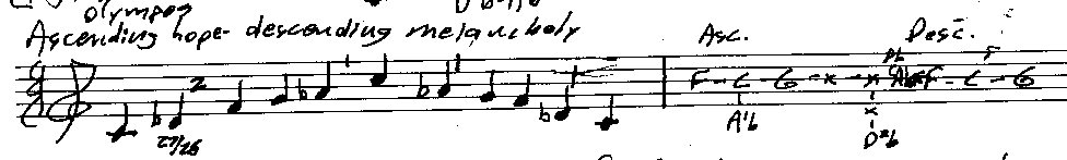 Several generations after Pythagoras, a group of people calling themselves The Harmonists developed dozens of other scales. In this chapter I demonstrate the traditional ancient Greek modes, plus dozens of more obscure ancient Greek modes from other centuries. For example, Danielou’s version of the Olympos scale, which I used in my song “Late Have I Loved You,” was developed in 650 B.C. It evokes hope on the ascent and melancholy as it descends, and two different pitches are used for the Db’s.