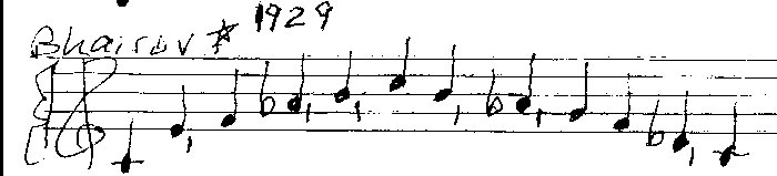 The term raga means “passion,” and implies more than a mere scale or mode. Each raga is a grouping of pitches that represents a definite emotional state.  With only one emotion often expressed, Indian music takes you deep into that emotion, rather than changing moods as the music progresses. Every raga has four elements: a tonic, constantly played; a scale of between five and nine notes (which may be major vs minor for ascending and descending passages); melodic figures which constitute the theme; and a Vadi (dominant), which is any note which is played much more often than others. Here is the diagrammatic example of the Bhairav raga:
